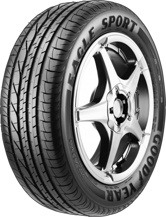 La llanta Goodyear Eagle Sport es un neumático de alto rendimiento para todas las estaciones fabricado para vehículos de pasajeros y SUV. Este modelo tiene una tracción mejorada tanto en condiciones secas como húmedas, así como un mejor agarre en clima invernal. El neumático es resistente al hidroplaneo y tiene estabilidad a alta velocidad gracias a los flancos reforzados. La banda de rodadura asimétrica hace que la vida útil de la banda de rodadura del neumático sea más larga, ya que se desgasta uniformemente y también ofrece una mejor maniobrabilidad. El Eagle Sport protege la llanta del daño de la acera y la pared lateral reforzada ofrece una mayor seguridad a alta velocidad.